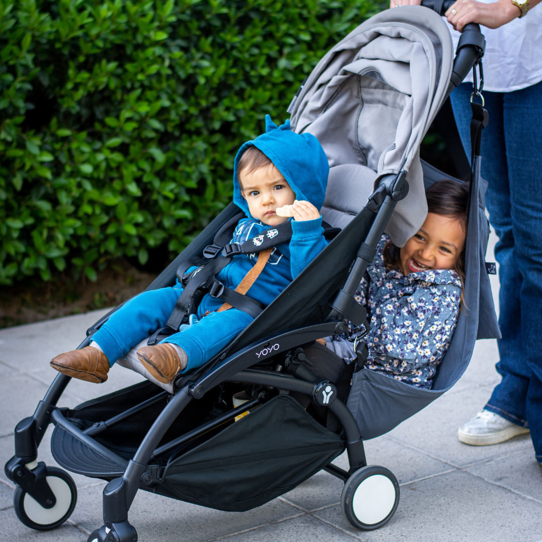 La Hamaca Hermano Mayor de Úpale transforma tu coche en un coche doble de manera práctica y cómoda, siendo la alternativa ideal a las patinetas o a los cochecitos dobles tradicionales.