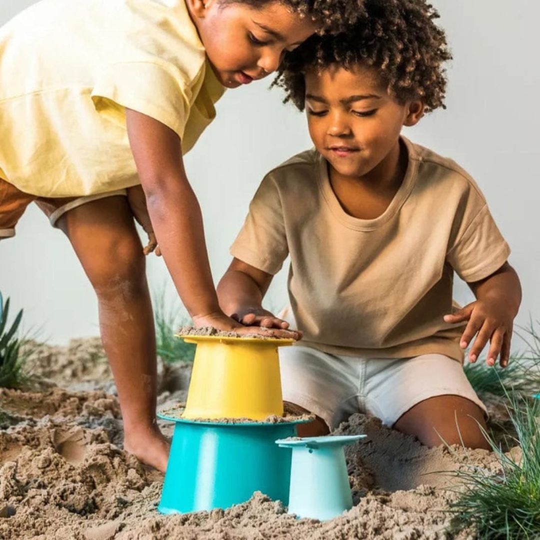 Haz tus sueños de playa realidad con los Moldes de Playa Alto Turquesa de Quut. Estos tres moldes encajables hacen que construir castillos de arena sea más divertido que nunca. Ideales para jugar individualmente o con amigos, permiten crear maravillosas torres de arena. Con tres medidas diferentes, se pueden apilar conjuntamente o usar por separado, ¡las opciones de juego son libres!