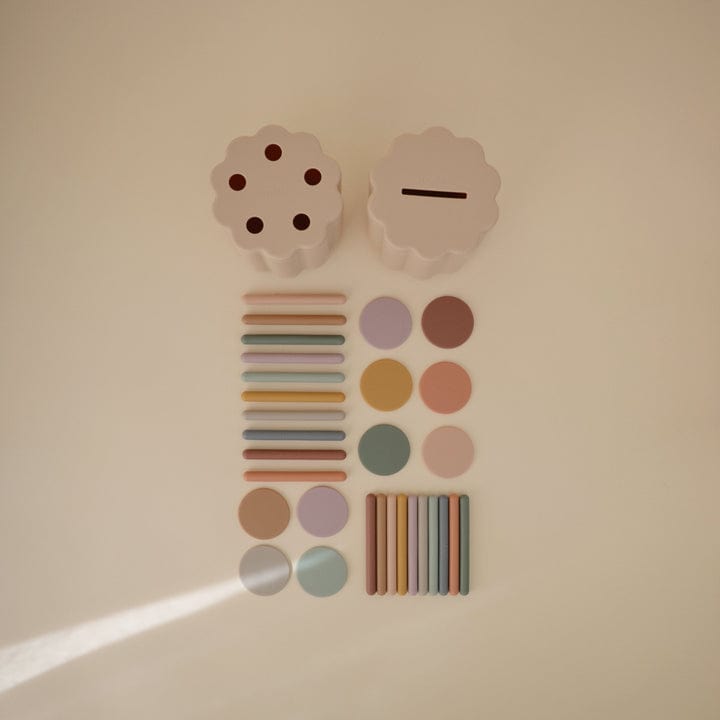 Potencia el aprendizaje temprano con este juego de clasificación diseñado para estimular la coordinación mano-ojo, la motricidad fina y la resolución de problemas. Incluye una caja redonda con bordes suaves y dos tapas intercambiables que permiten distintas formas de jugar: clasificar, emparejar o experimentar con encajes. Sus 20 monedas y tubos de colores son fáciles de manipular y perfectos para manos pequeñas, ofreciendo un juego educativo seguro y entretenido.