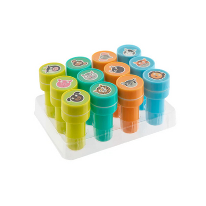 Este set de timbres es perfecto para los pequeños amantes de los animales. Incluye 12 diseños adorables —como elefantes, tigres, vacas y mapaches— ideales para decorar, jugar y dejar volar la imaginación.