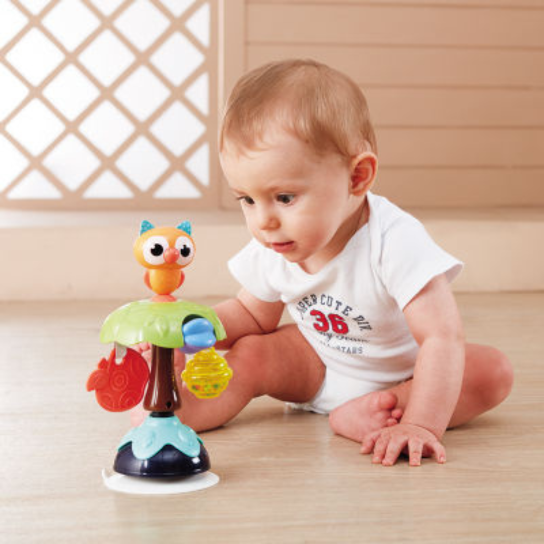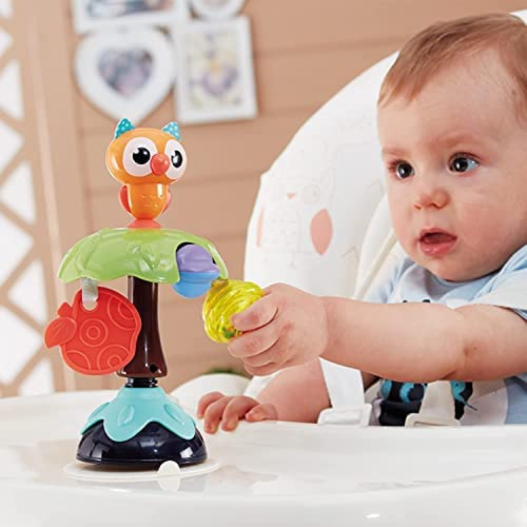 Los juguetes cuentan con una ventosa que permite sujetarlos a la mayoría de las superficies planas, incluidas sillas de bebé o mesas.