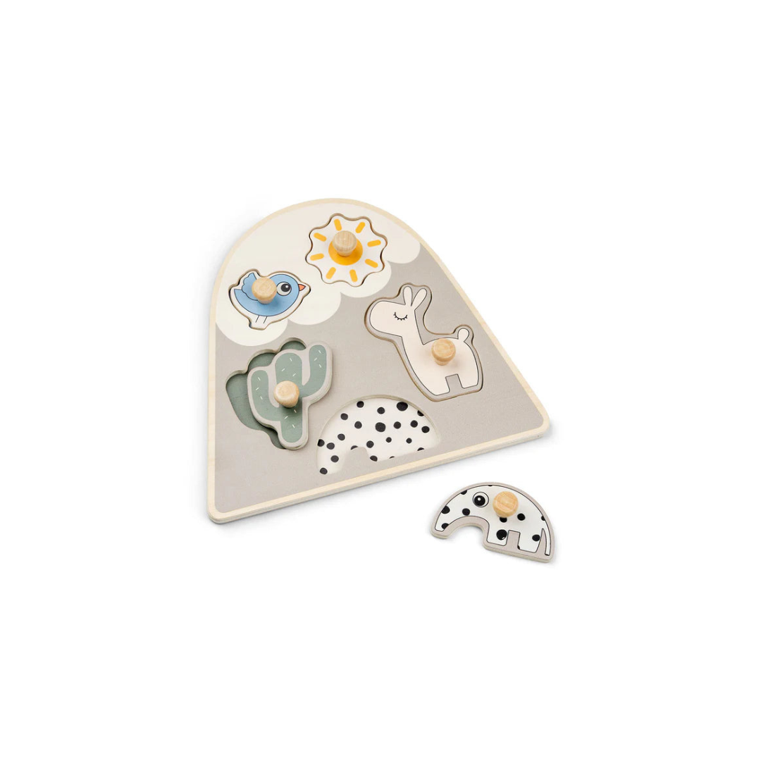 El rompecabezas de madera Lalee es el compañero perfecto para que tu pequeño desarrolle habilidades motoras finas, pensamiento lógico y resolución de problemas mientras se divierte. Este encantador puzzle cuenta con cinco piezas de madera diseñadas especialmente para manos pequeñas.