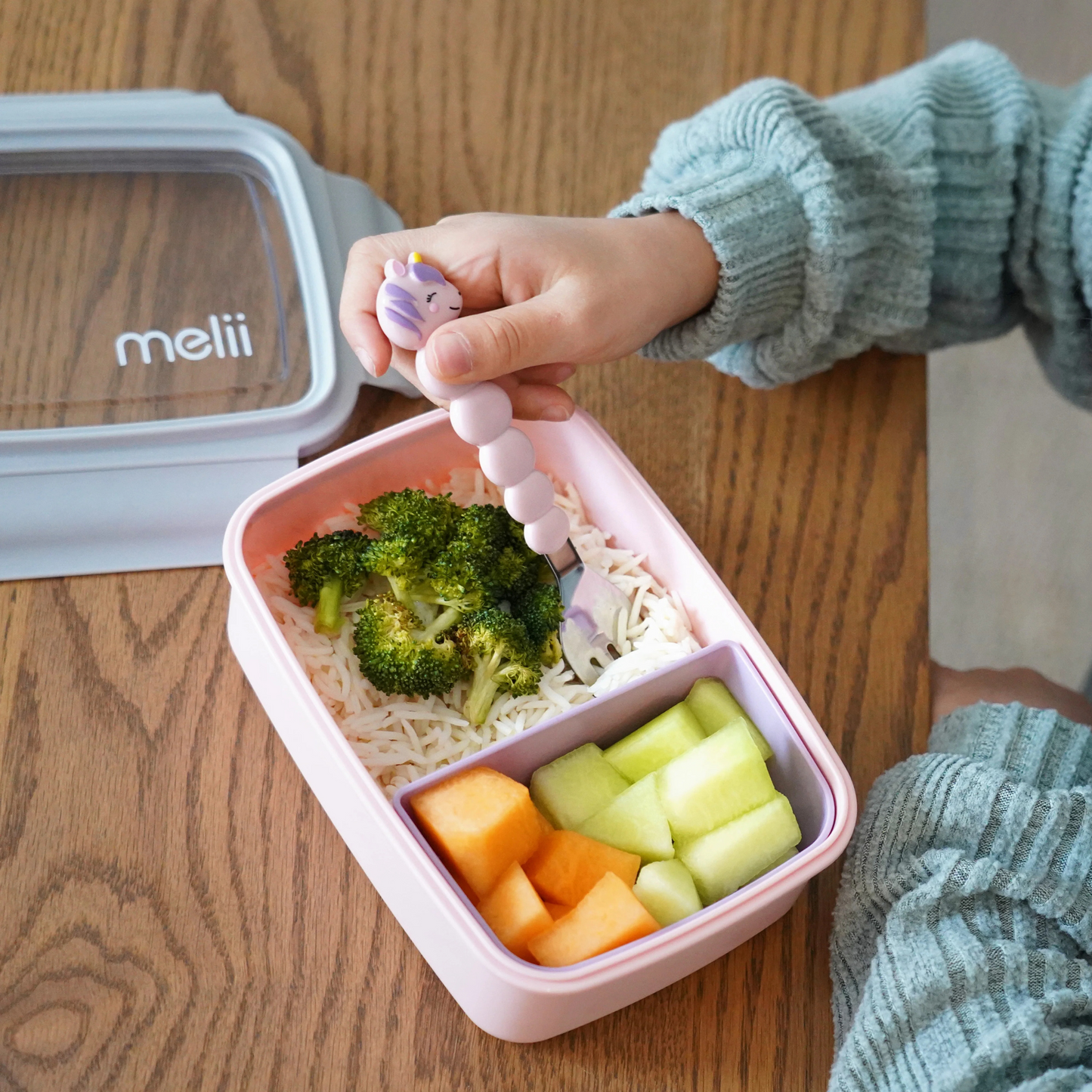 La lonchera bento de Melii combina practicidad y diseño en un formato ideal para niños/as y adultos. Cuenta con una sección grande de 880 ml y un compartimento extraíble de 280 ml, perfectos para separar comidas o snacks.