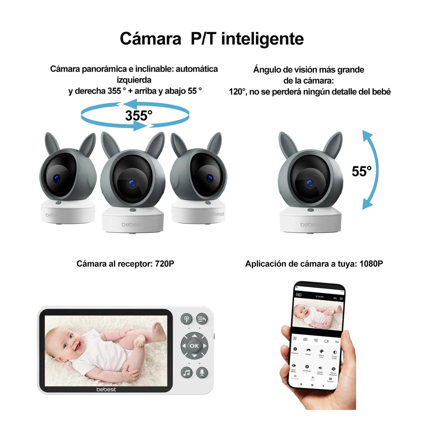 - Visión 360°: La cámara ofrece un rango de visión completo de 360 grados, permitiéndote monitorear a tu bebé desde todos los ángulos posibles sin perderte ningún detalle.