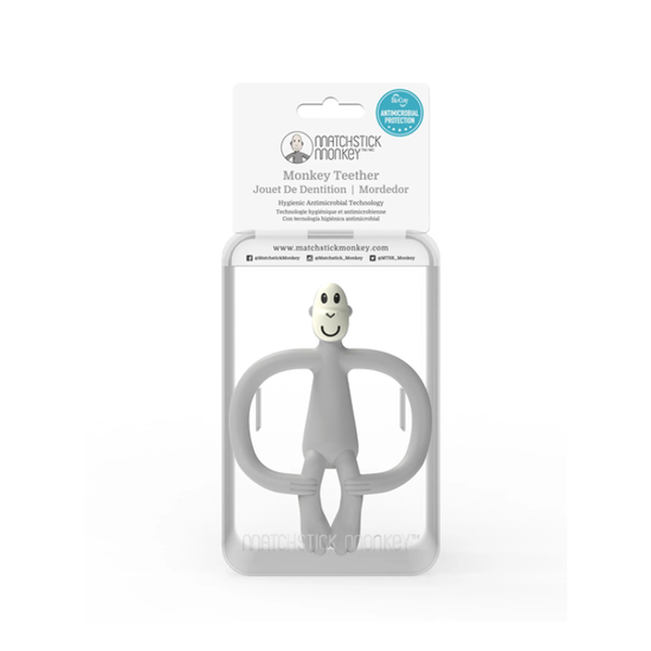 El mordedor Mono de Matchstick es un mordedor divertido y flexible para bebés y niños pequeños, que ayuda a aliviar el dolor de la dentición y satisface la necesidad de masticar. Están fabricados con tecnología antimicrobiana BioCote®, para ayudar a mantener a raya a los gérmenes, mientras que las protuberancias texturizadas ayudan a calmar las encías doloridas y la forma ergonómica ayuda a llegar fácilmente a los molares posteriores, ¡lo que significa que no se muerde los dedos! BioCote reduce los microbios, lo que lo hace más higiénico y más limpio. Además de ayudar a tu pequeño a desarrollar sus habilidades motoras, encontrará irresistibles las variadas texturas con las que cuenta.