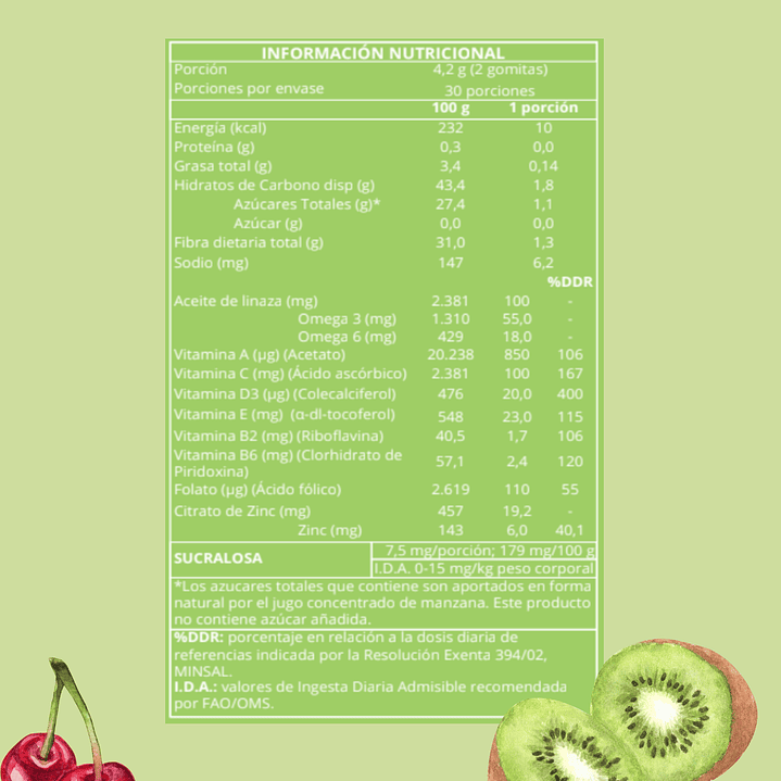 - Sabor natural: Una combinación de Cherry y Kiwi que encanta a los niños.