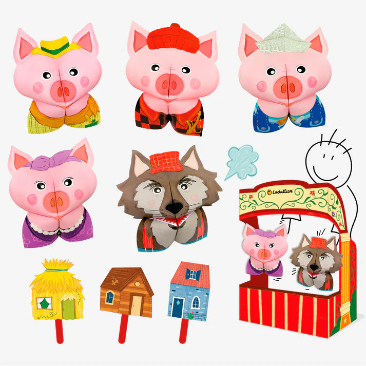 El tradicional cuento de Los Tres Chanchitos llega en una versión única que une el arte del origami con el juego narrativo. Este encantador set de Ludattica permite a los más pequeños dar vida a los personajes del cuento doblando papel, recortando y armando un teatro de marionetas, fomentando la creatividad y el juego simbólico.