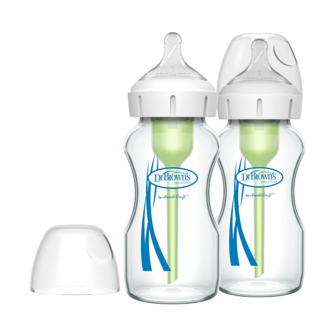 Asegura la mejor experiencia de alimentación para tu bebé con el pack de 2 mamaderas de vidrio boca ancha Options+ de Dr. Brown’s. Con una capacidad de 270 ml cada una, estas mamaderas incluyen tetinas suaves de silicona que imitan la forma del pezón materno, perfectas para recién nacidos.