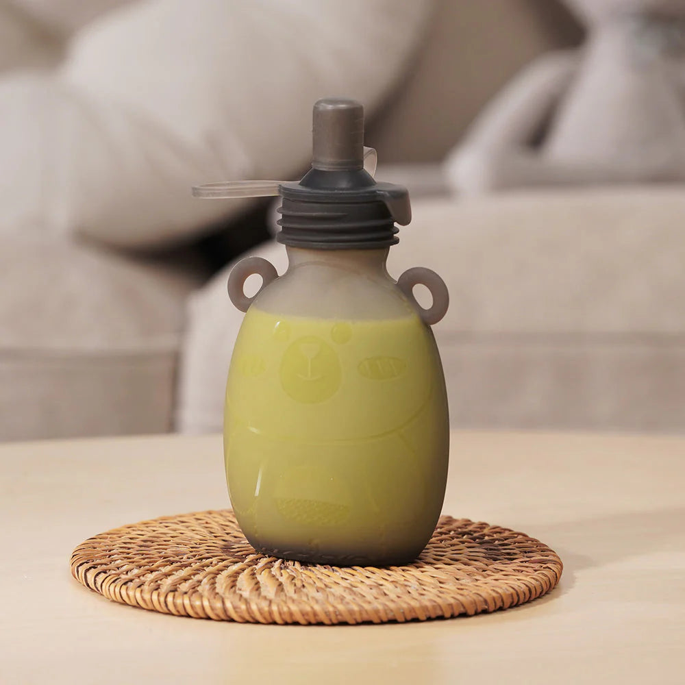 ¡La manera más fácil y divertida de ofrecer comida casera a tu pequeño cuando están fuera de casa! Nuestras bolsas reutilizables de silicona Happii Bear están pensadas para acompañarte en cada paseo, viaje o momento fuera del hogar, permitiendo que tu bebé disfrute de papillas, smoothies o purés donde sea que estén.