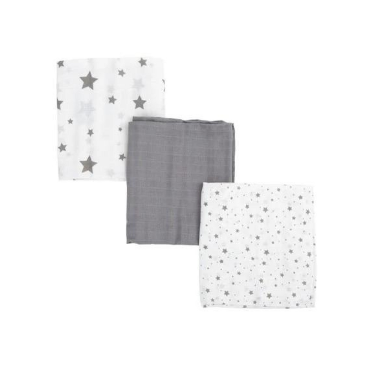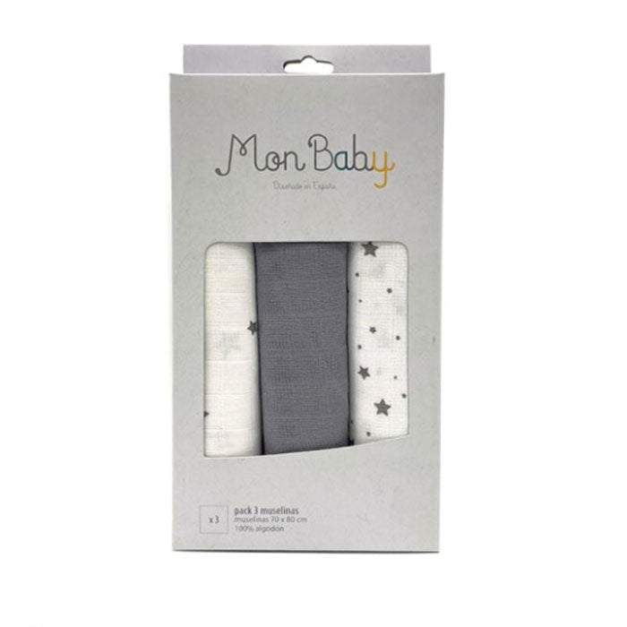Pack de 3 Muselinas 80x70 cm - Estrellas Gris