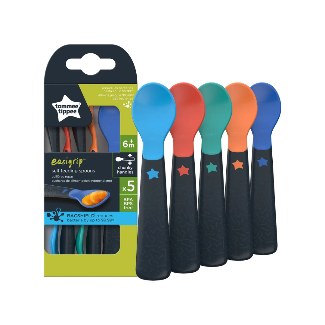El set de 5 cucharas Easigrip de Tommee Tippee está diseñado especialmente para acompañar a tu bebé en sus primeras experiencias de alimentación independiente. Ideales para el método Baby Led Weaning, su diseño ergonómico y funcional hace que comer solito sea mucho más fácil y divertido.