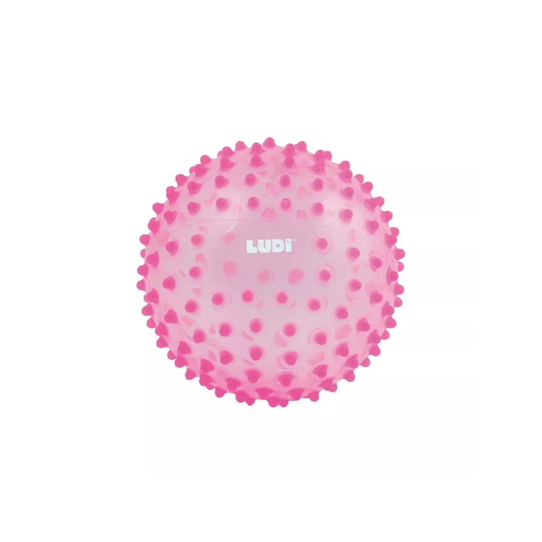 La Pelota Sensorial Rosa de Ludi es el accesorio perfecto para estimular el desarrollo físico y sensorial de tu bebé. Con su diseño inflable y suaves bultos en la superficie, esta pelota ayuda a perfeccionar la agilidad y las habilidades motoras mientras mejora el equilibrio y la coordinación, especialmente cuando tu pequeño está aprendiendo a caminar por primera vez.