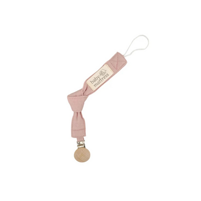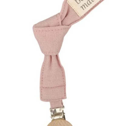 Cuenta con un broche de madera natural, seguro y duradero, que aporta calidez y un acabado especial. Además, su practicidad lo hace ideal para mantener el chupete siempre a mano y libre de suciedad.