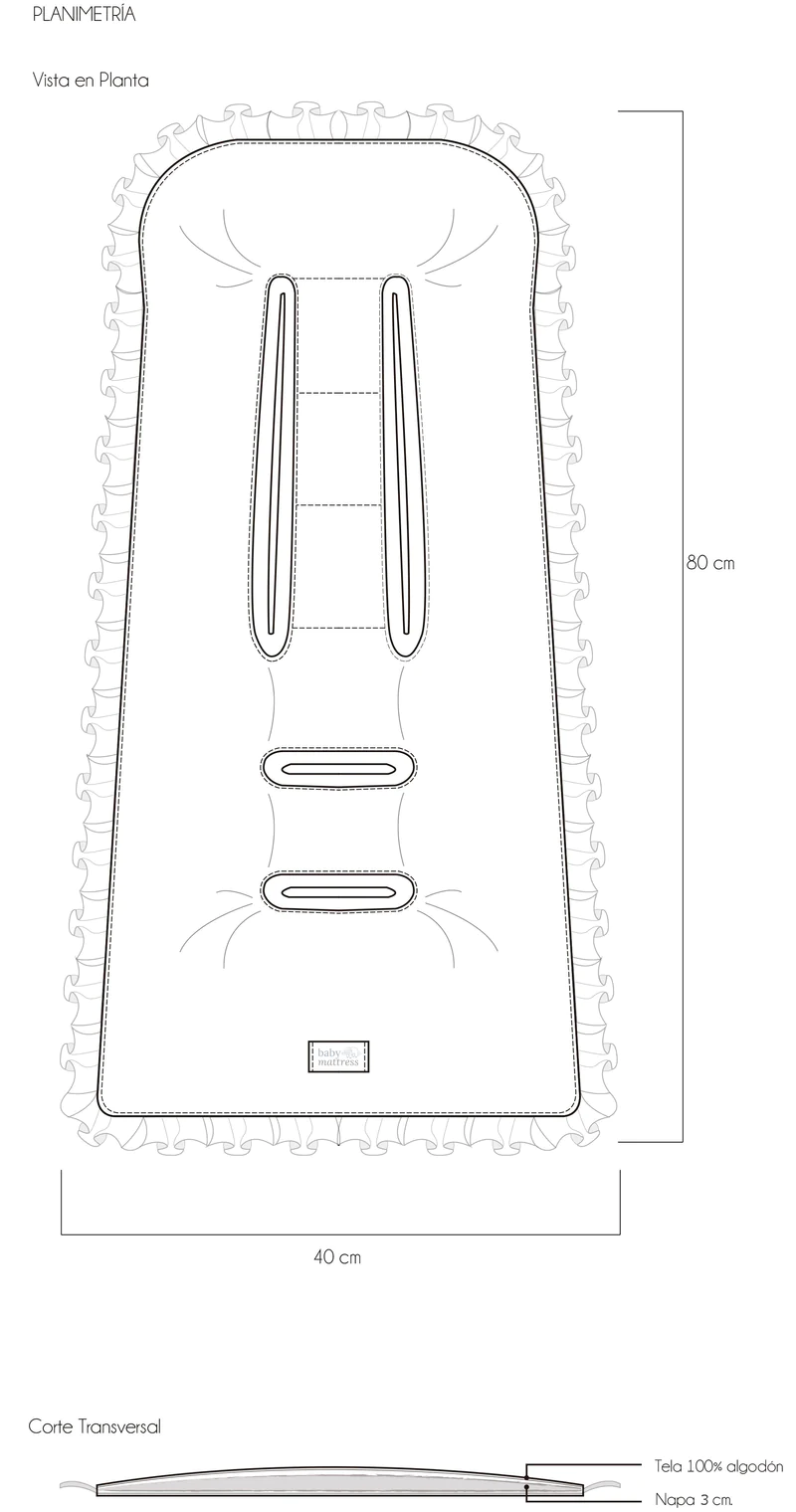 - Material: Tela 100% algodón con relleno de napa de 3 cm