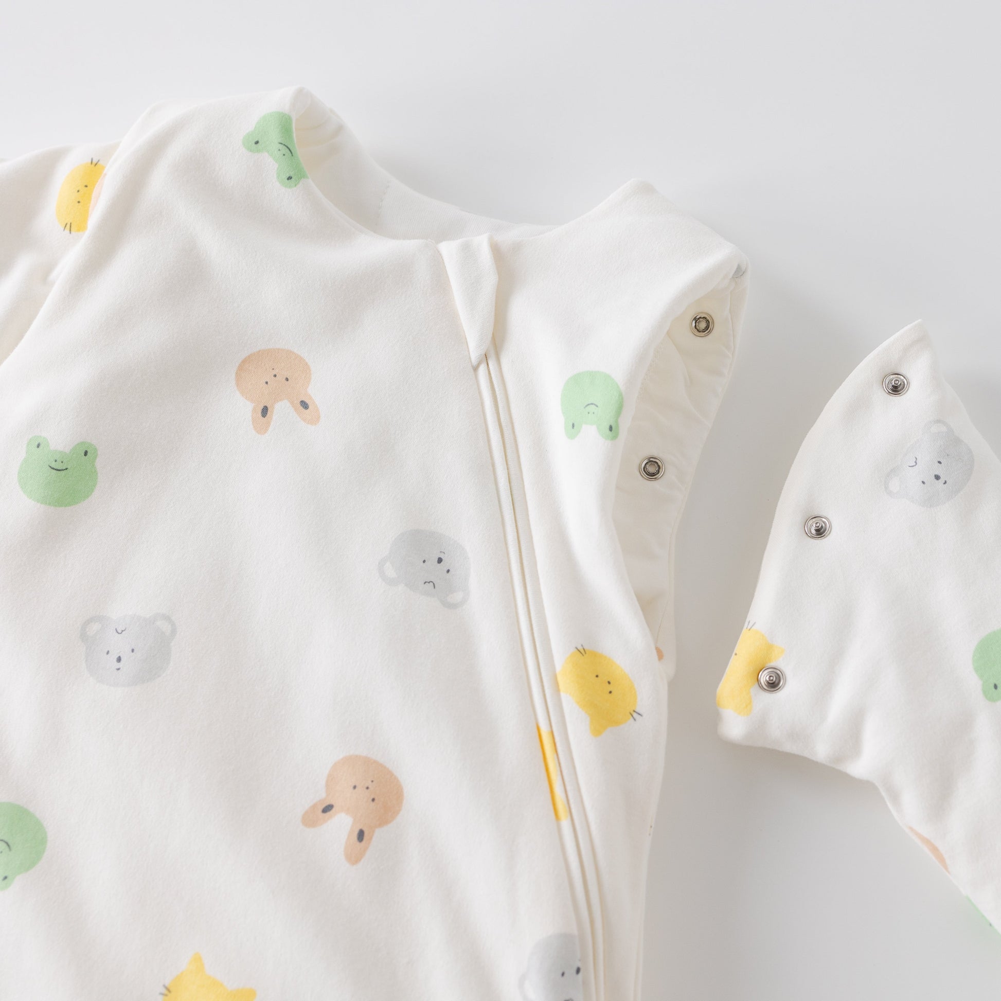 - Cierre inferior que permite abrir desde abajo para cambios de pañal nocturnos sin desabrigar completamente al bebé.