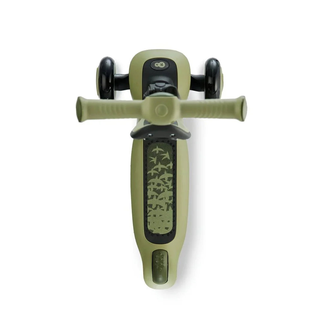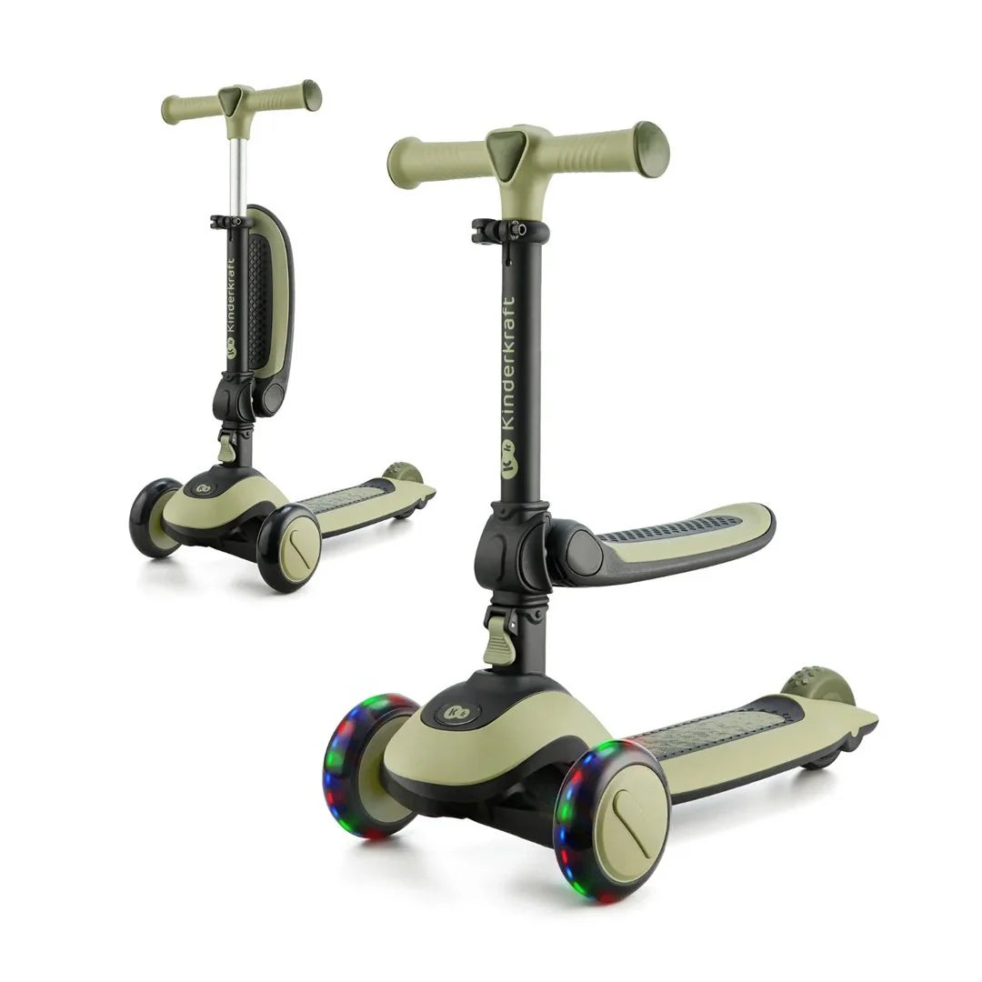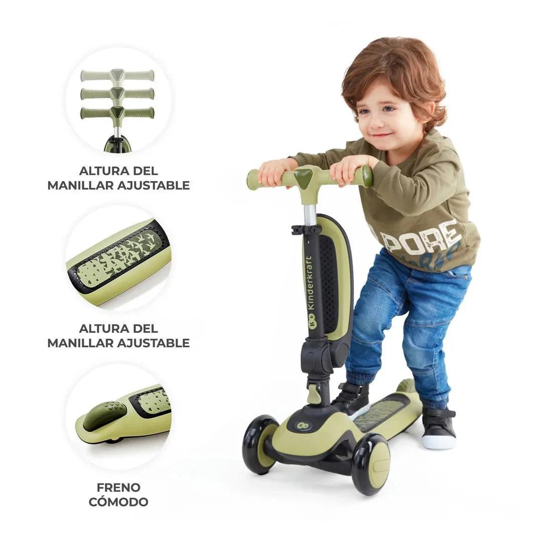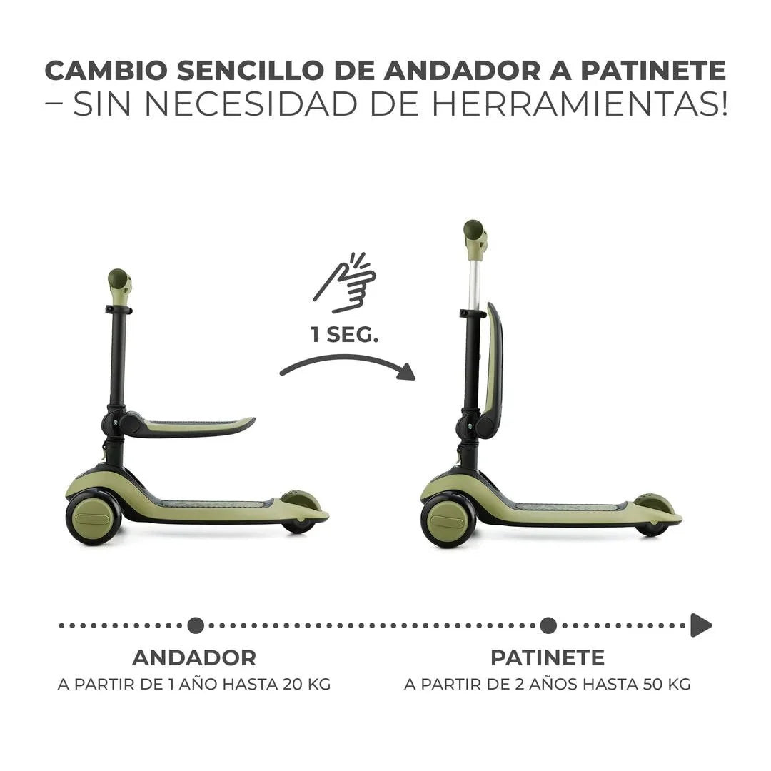 - Asiento Ajustable: Se eleva y baja fácilmente para transformar de triciclo a patinete.
