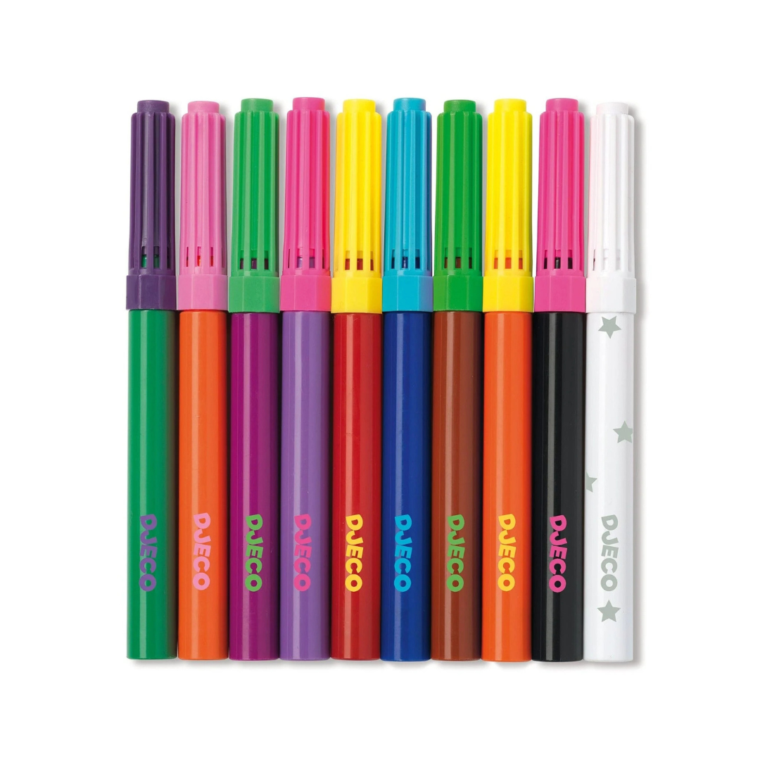 ¡Descubre la magia del dibujo con los 10 Lápices Plumones Mágicos de Djeco! Este increíble set permite a los niños descubrir una forma única de pintar, ya que sus colores cambian mágicamente al ser coloreados con el bolígrafo blanco especial incluido. ¡Una experiencia artística sorprendente que hará volar la imaginación y fomentará la creatividad de los más pequeños!