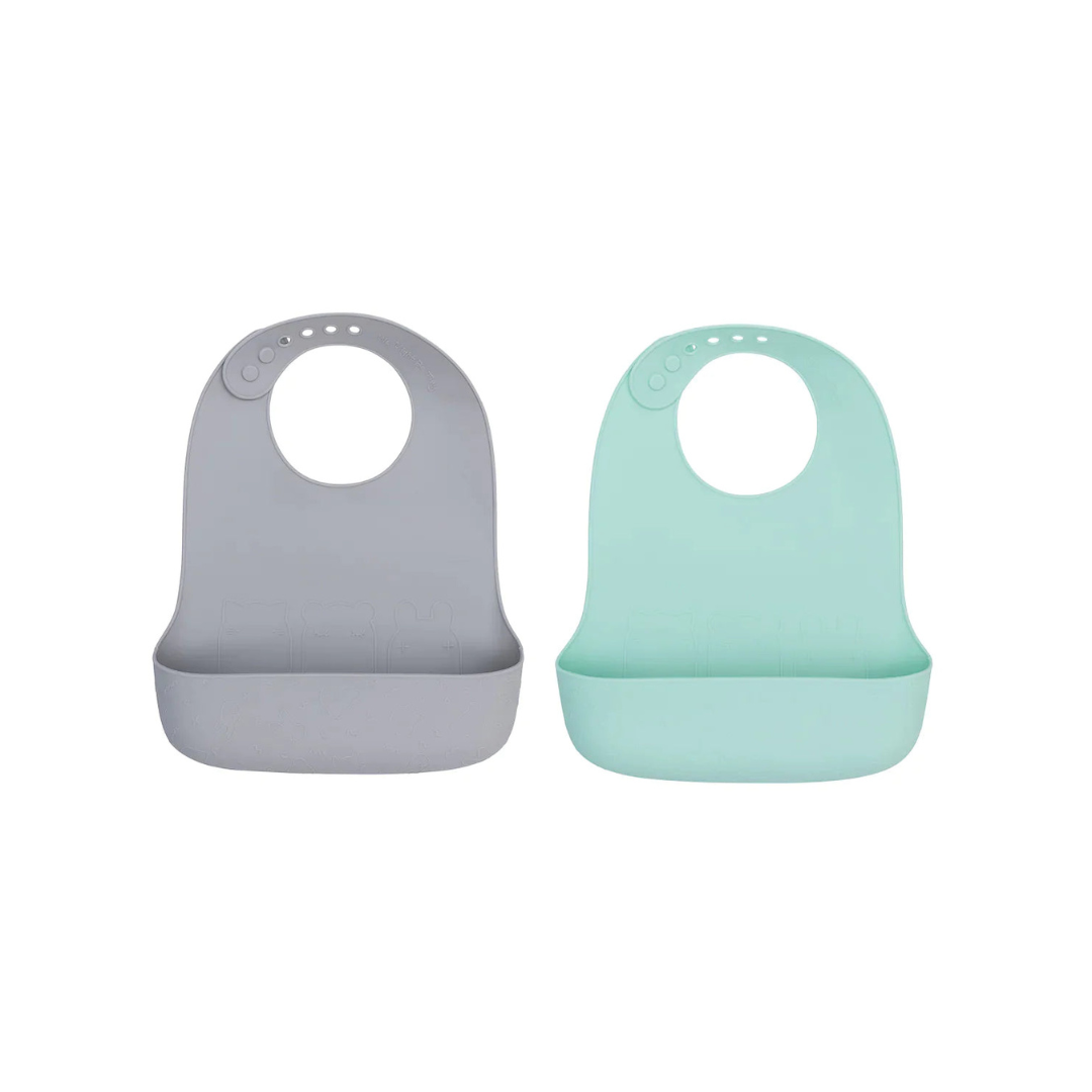 Set de Baberos de Silicona - Verde Menta y Gris Claro
