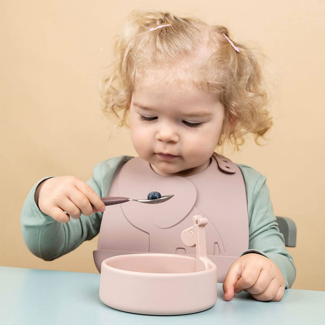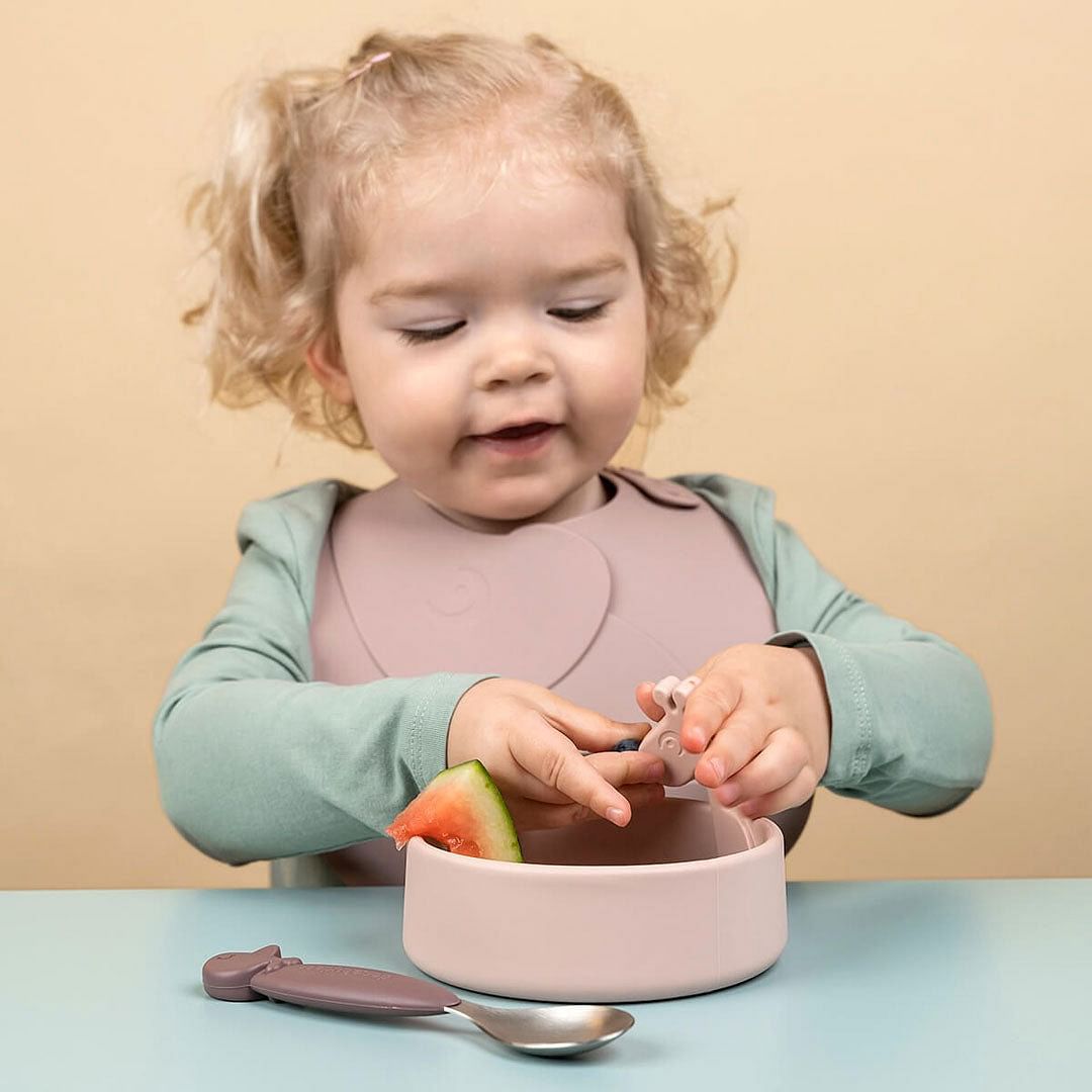 Ideal para el aprendizaje y exploración de texturas, este set acompaña las primeras comidas de manera segura y cómoda.