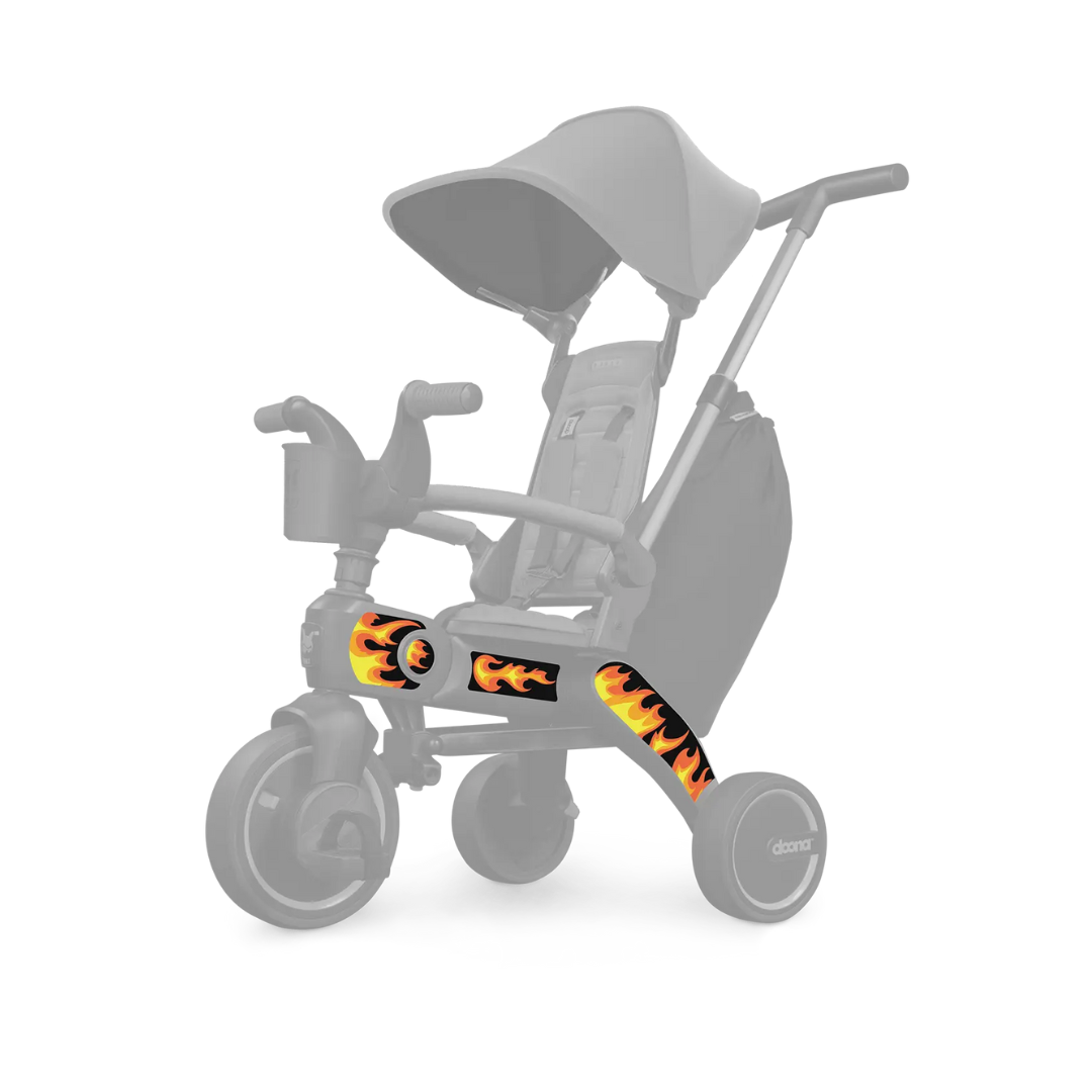 Disponible en dos diseños personalizables e intercambiables, es perfecto para renovar el look del triciclo cuando quieras, sin dejar residuos al retirarlos.