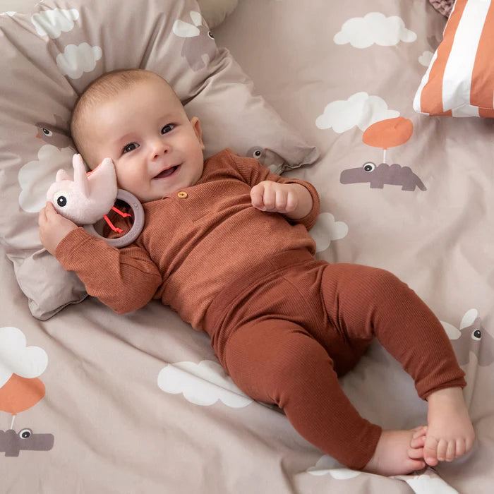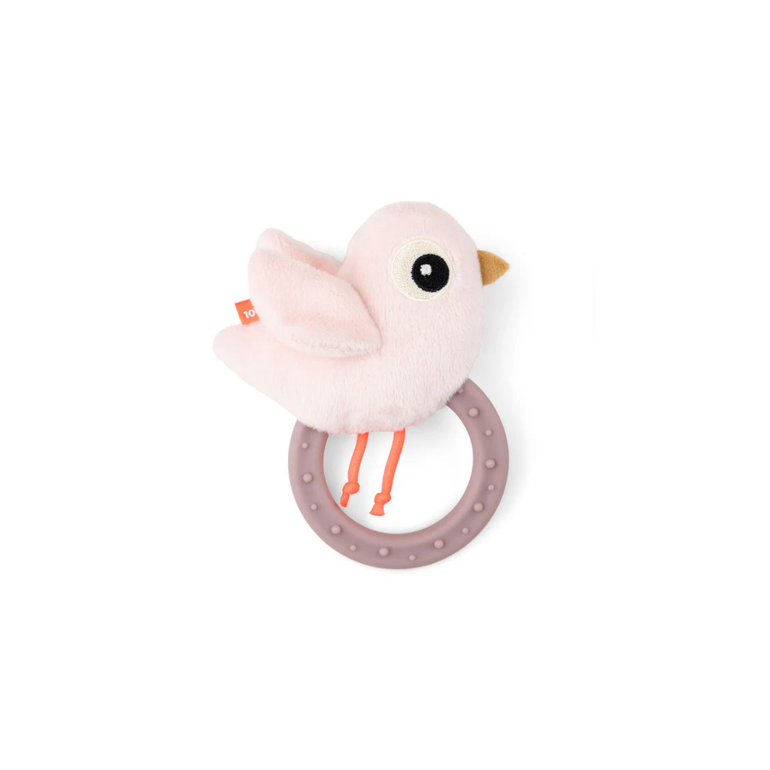 Dale a tu pequeño el regalo de la exploración sensorial y el alivio durante la dentición con el encantador Sonajero Sensorial Birdee Rosa de Done by Deer. Un accesorio imprescindible para los primeros meses de tu bebé.