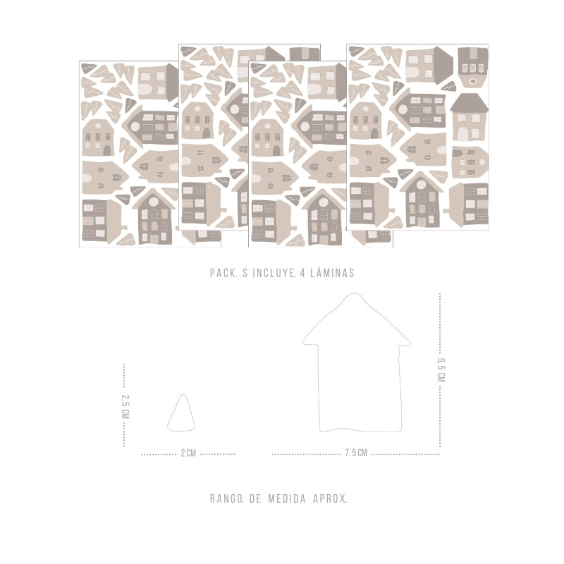 Stickers Decorativos Para Muros - Casitas S Taupe
