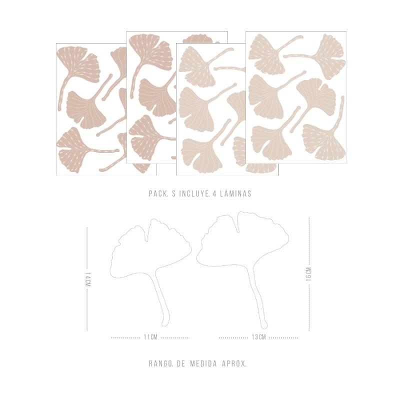 Stickers Decorativos Para Muros - Gingko Crema Dúo