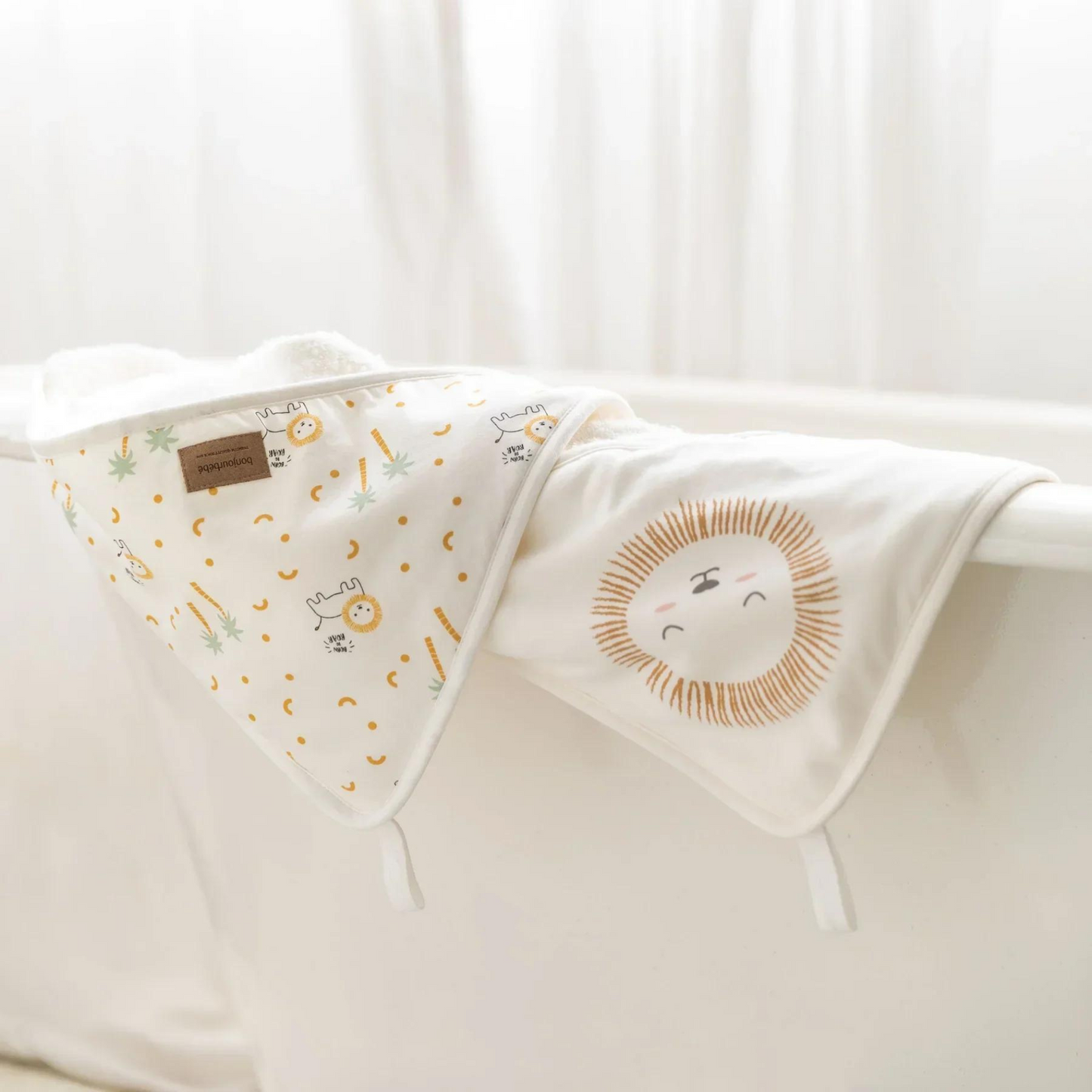 Es fundamental secar bien la piel de tu bebé después de cada baño para mantenerla saludable. Por eso, las toallas de baño con capucha de la marca Bonjourbébé, hechas 100% de jersey de algodón, son la opción ideal. Están diseñadas para proteger y cuidar la delicada piel del bebé, ofreciendo un tacto súper suave y un volumen que garantiza una excelente absorción y confort tras el baño.