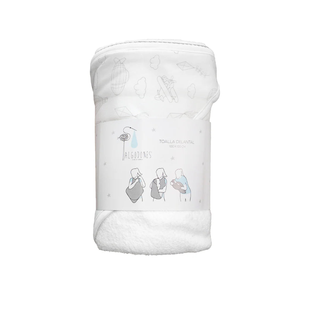 La Toalla Delantal de Baño está diseñada para facilitar ese momento especial después del baño. Con su práctico diseño tipo delantal y doble broche de ajuste, te permite tener las manos libres para sostener y secar a tu bebé con seguridad y cariño.