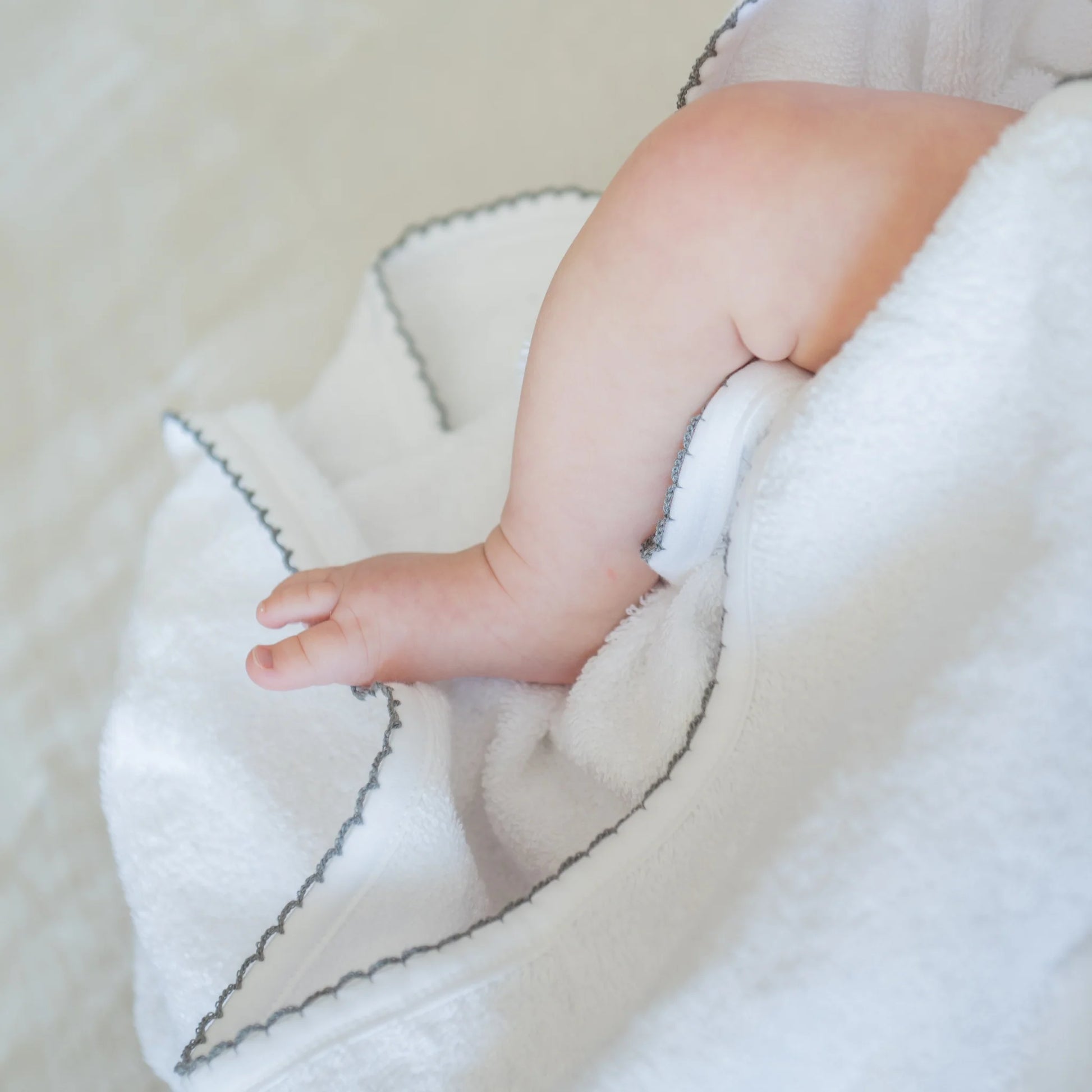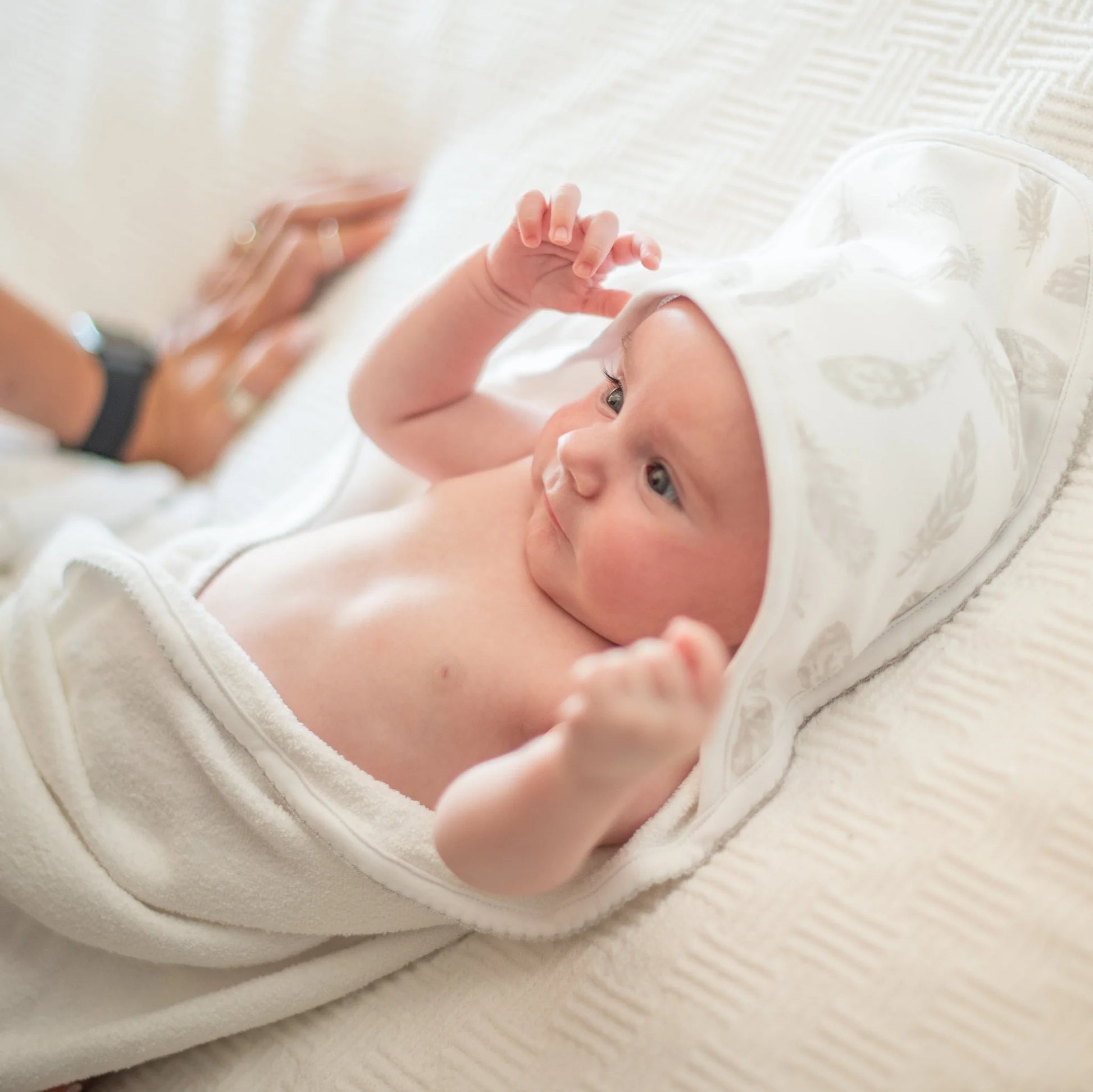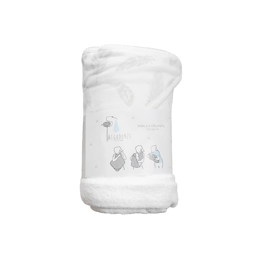 La Toalla Delantal de Baño está diseñada para facilitar ese momento especial después del baño. Con su práctico diseño tipo delantal y doble broche de ajuste, te permite tener las manos libres para sostener y secar a tu bebé con seguridad y cariño.