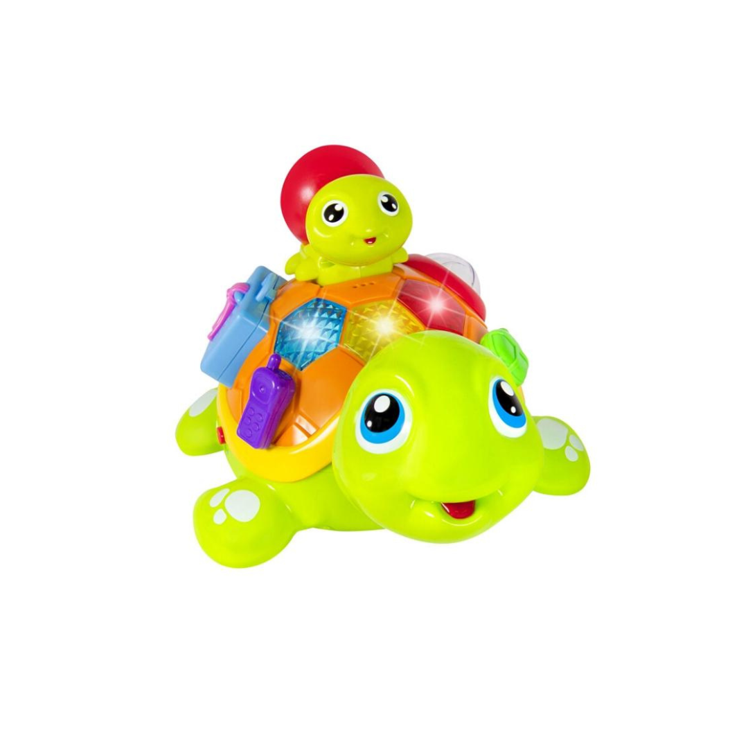 - Fácil interacción: Al tocar los pies de la tortuga adulta, esta empieza a hablar o a reproducir música divertida.