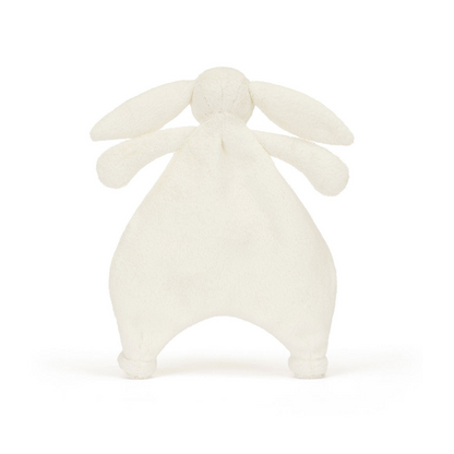 El tuto comforter tiene una textura irresistiblemente suave y está especialmente diseñado para acompañar a los más pequeños en sus siestas. El conejito tiene las típicas orejas largas caídas, una nariz de gamuza rosa y ojos bordados. Su cuerpo no tiene relleno y sus patas, delicadamente blandas con pies en forma de bola, facilitan que las pequeñas manos de nuestros niños lo puedan sostener fácilmente.