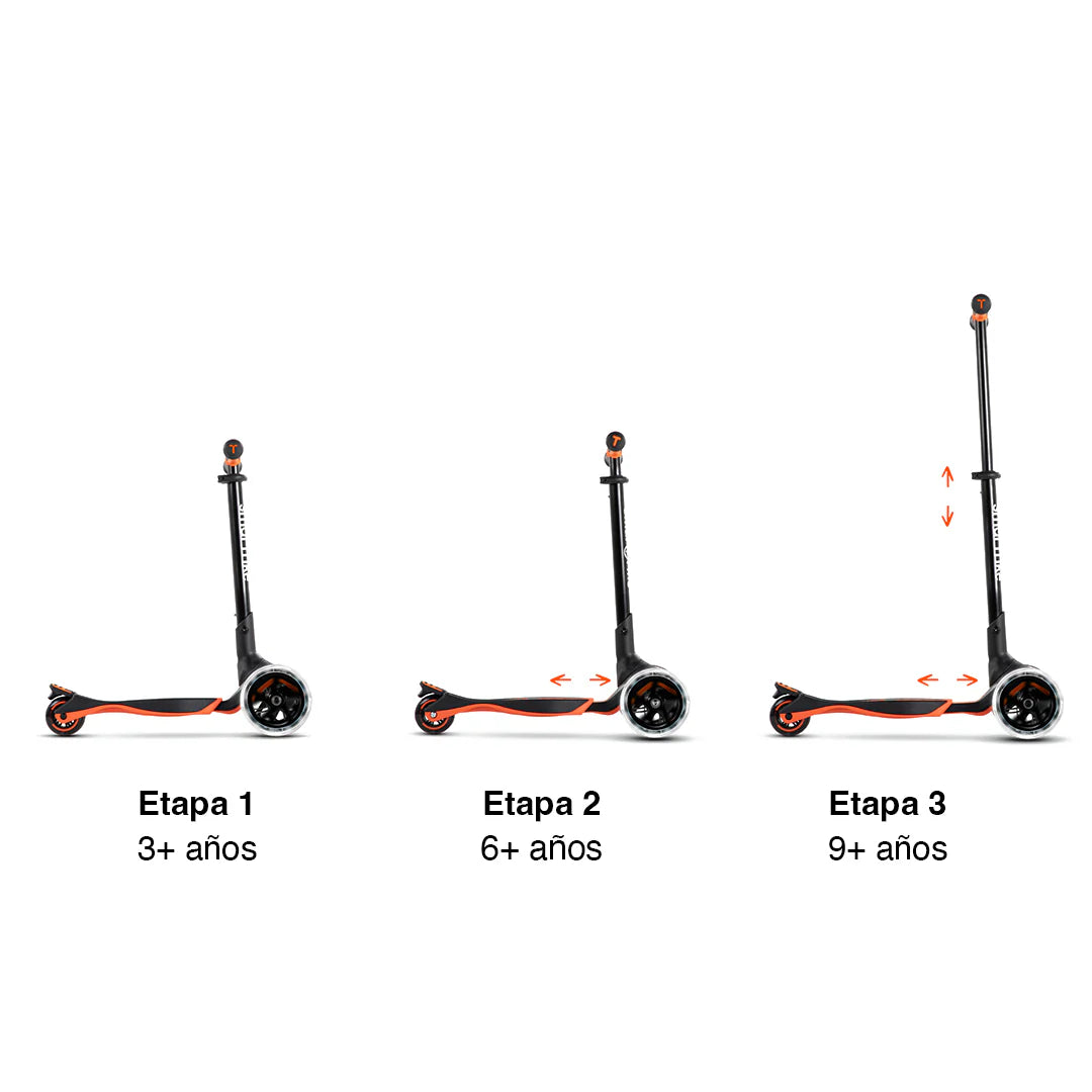 Reposapiés Extensible: El único scooter extensible en el mundo, diseñado para ajustarse al crecimiento de tu hijo, garantizando el máximo confort durante años.